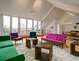 - Velký obývací pokoj/jídelna (70 m²) v horním patře, výhradně designové klasiky, jako např. Asco, Mono Rustical, Thonet a Hans J. Wegner atd.