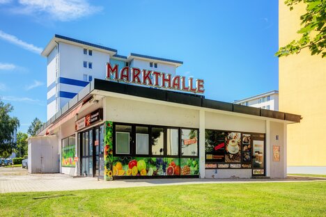 Fodgængerzone med indkøbscenter, supermarkeder, apoteker og drugstores
