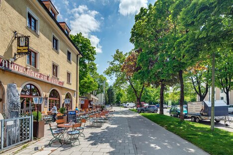 Bydelen er dog ikke så stille, som den ser ud ved første øjekast, for her er også mange små pubber, som indbyder til at blive hængende. Mod syd ligger Hirschgarten, Münchens største ølhave, som tiltrækker masser af besøgende, især om sommeren. Livet pulserer også i nærheden af Rotkreuzplatz, som er Nymphenburgs trafikale centrum: Her finder du et stormagasin, mange mindre butikker og caféer samt byens eneste engelske biograf.