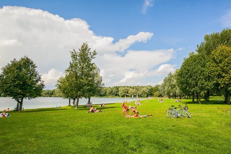Yerel tarih müzesi, spor kulübü, halfpipe, tenis, Feringa ve Unterföhring gölleri